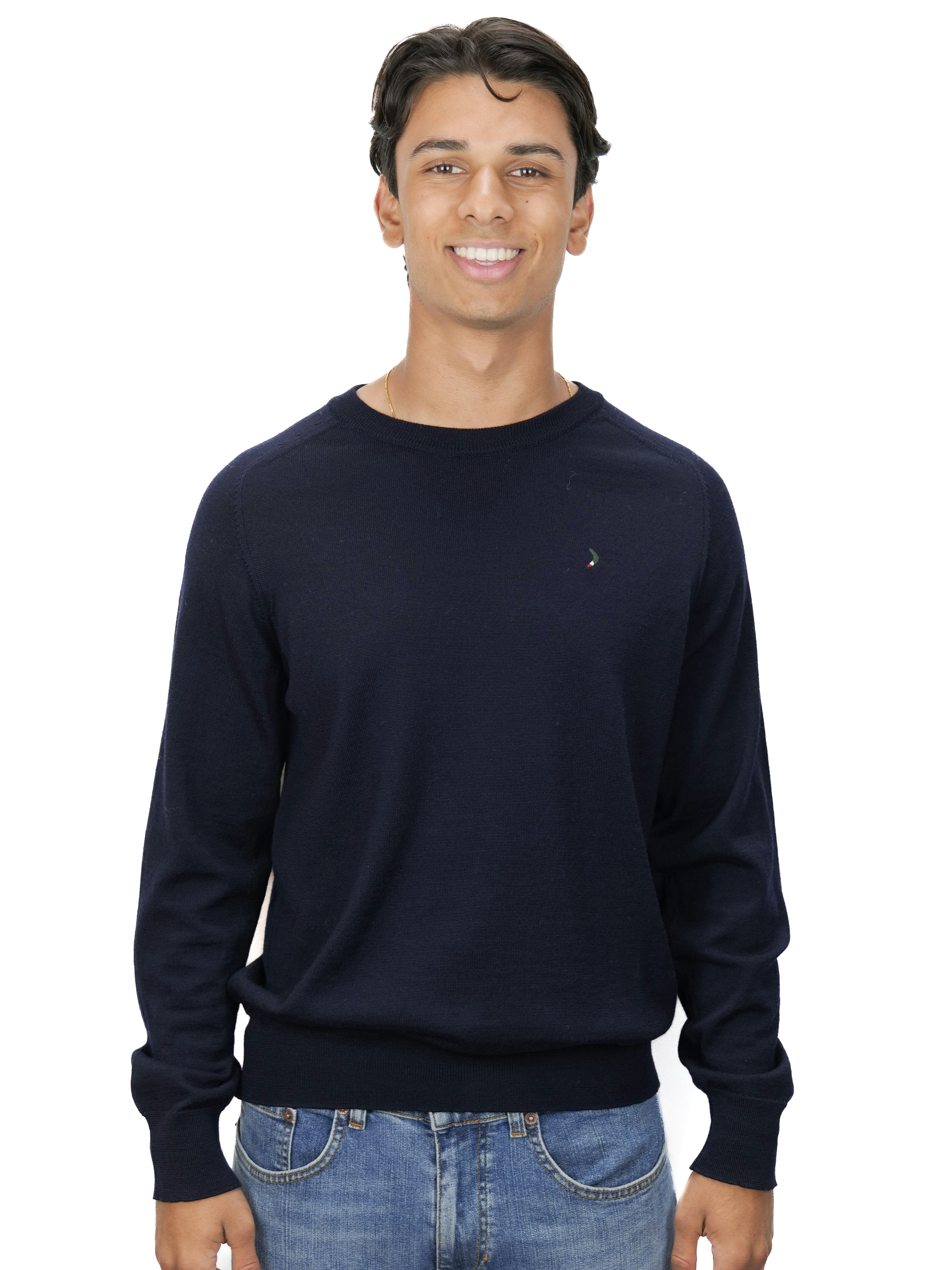 Adelsö är en rundhalsad stickad tröja i mjuk och exklusiv merinoull – ett perfekt basplagg med det lilla extra. Den faller fint mot kroppen och har en lyxig, stabil känsla som gör att den fungerar lika bra till vardags som till mer uppklädda sammanhang.