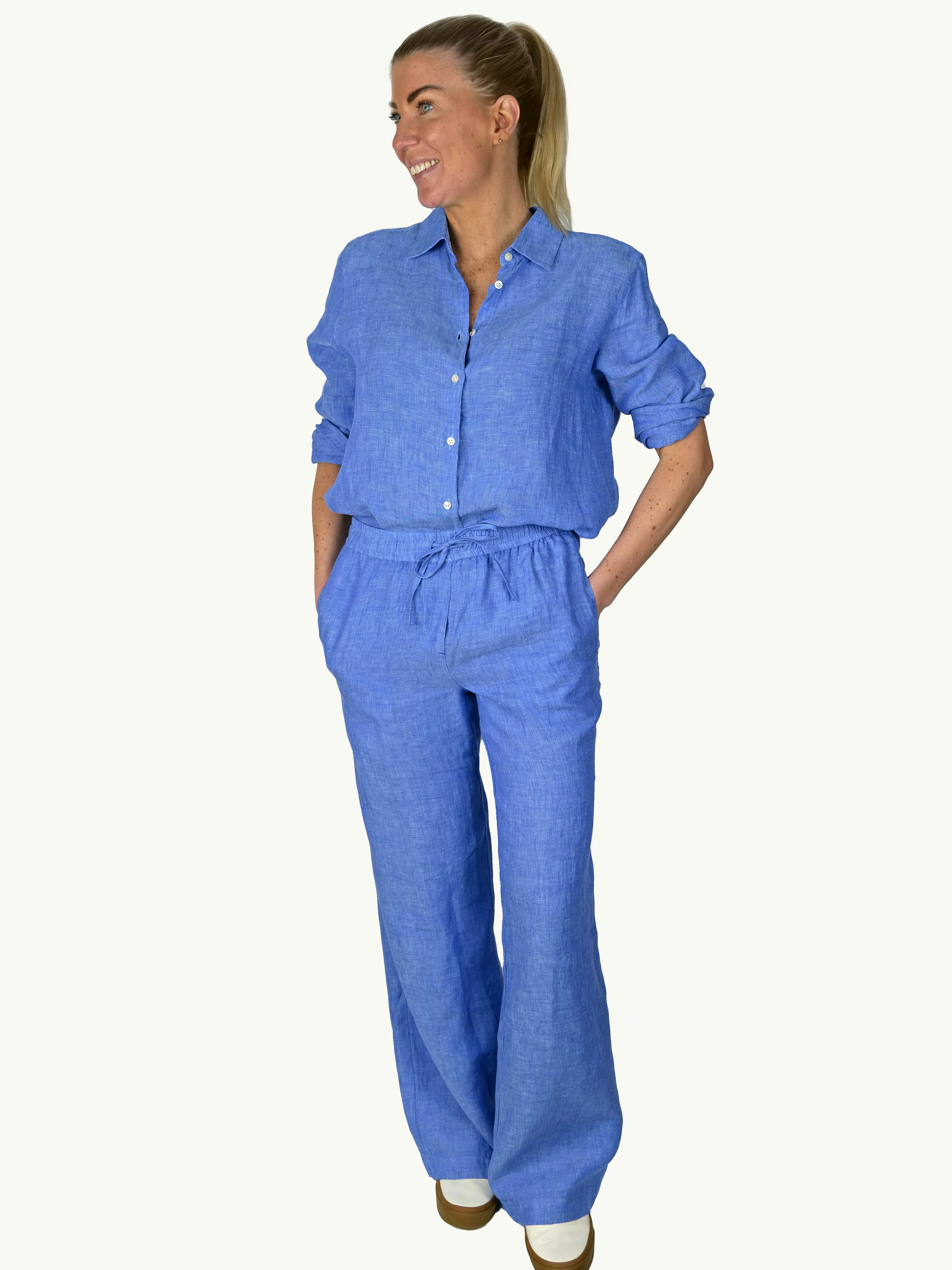 Bär byxorna tillsammans med våra linneöverdelar i samma färg som ett set eller styla dem med precis vad som helst som en oumbärlig vår- och sommarbyxa.