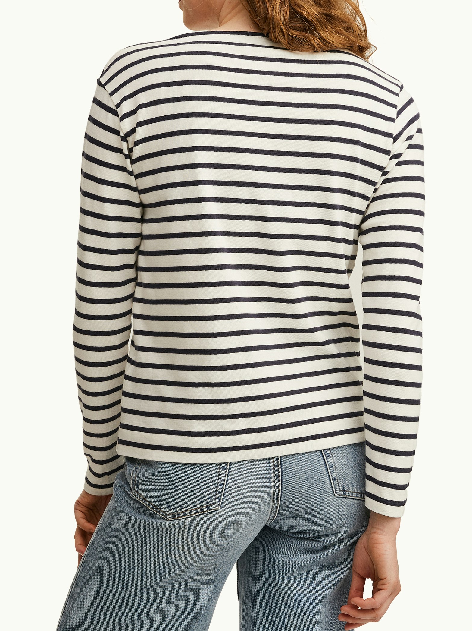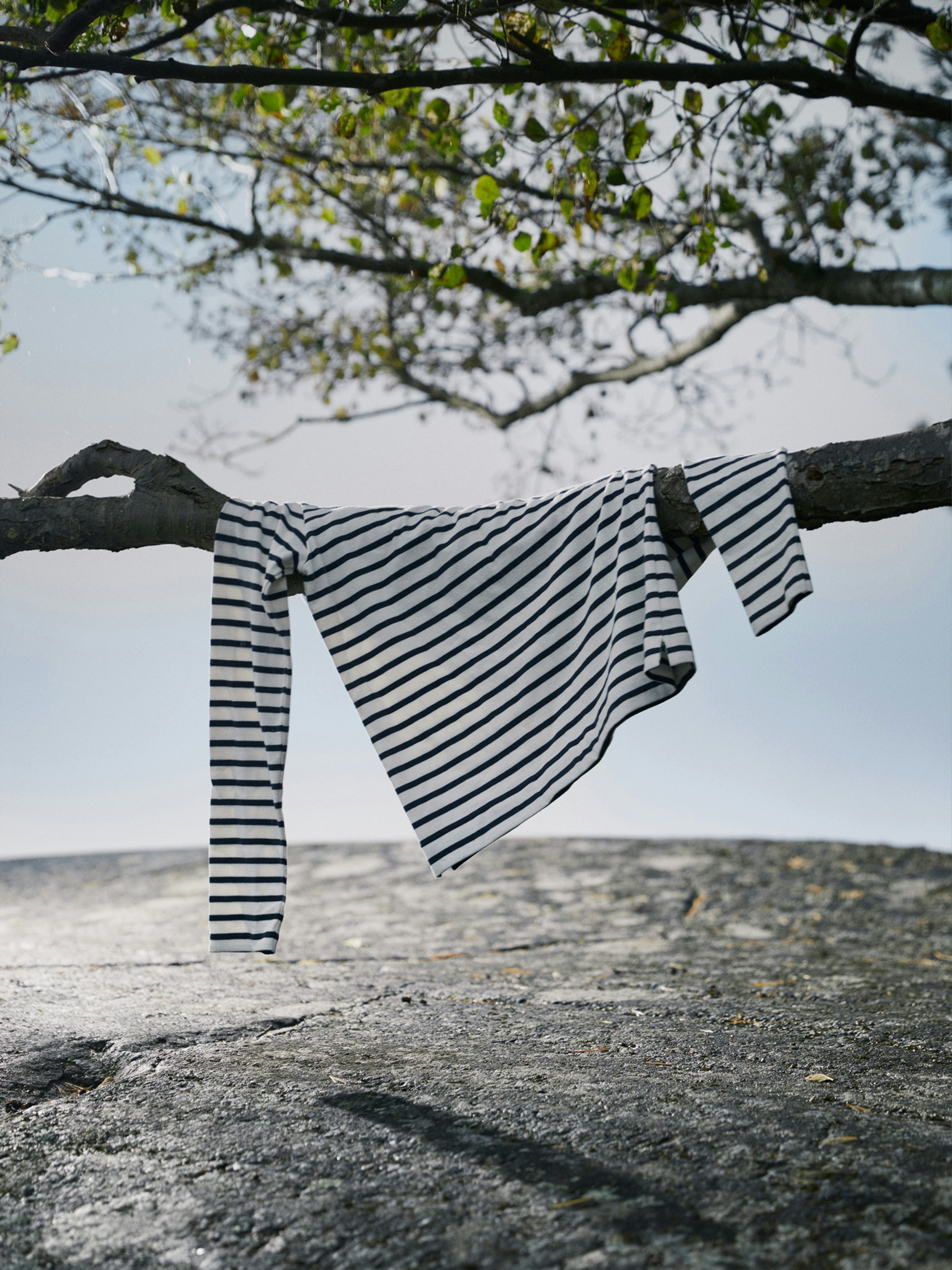 Den randiga t-shirten Bolmsö med lång ärm återvänder som en omtyckt klassiker, nu stolt stickad i Sverige.