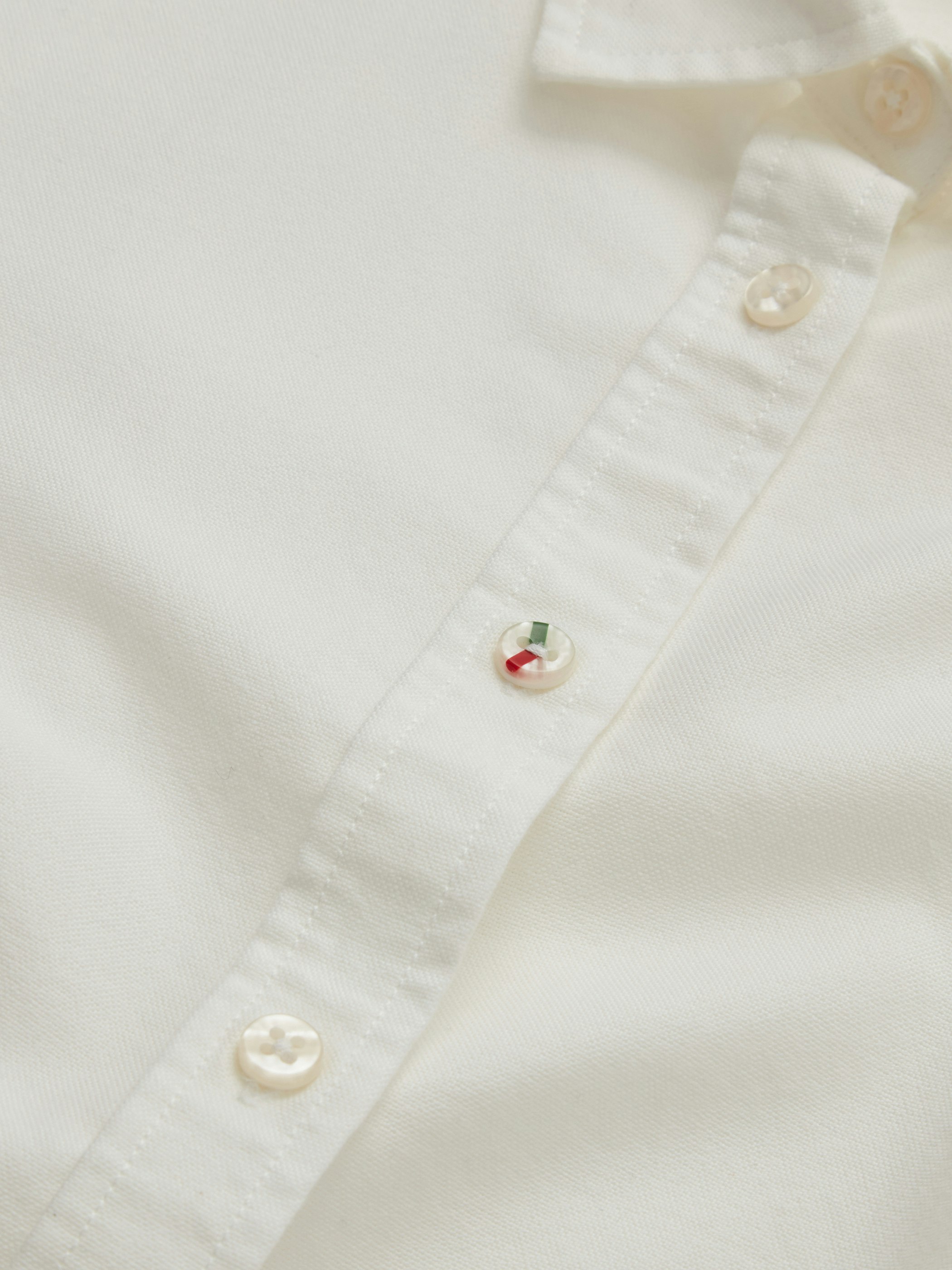 TillverkningVår ekologiska Oxfordväv är tillverkad hos ett familjeägd vävproducent i Porto, Portugal. Den här vävproducenten har varit med ända sedan starten 1976. Samma fabrik syr sedan upp skjortorna och har i skrivande stund tillverkat över en miljon Boomerangskjortor. För oss är det här väveriet så mycket mer än bara en producent, det är en lång vänskap. Som en symbol för vår kärlek och passion för detaljer har vi tillsammans tagit fram en handgjord knapp som målas med en klassisk pensel i färgerna rött och grönt i gedigen Boomerang anda. Vår Boomerangknapp är ett stolt signatur du hittat på många av våra plagg ända sedan 1979 och är ett hantverk vi hoppas du värdesätter lika mycket som vi.
