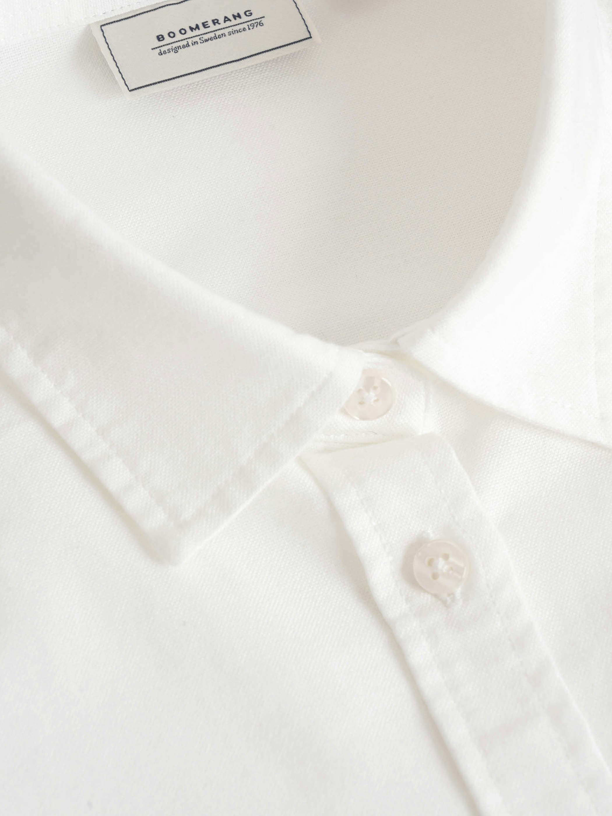 För att garantera komfort redan vid första användningen är skjortan förtvättad, vilket ger en mjuk och behaglig känsla. Signaturen i designen är vår handgjorda Boomerangknapp som pryder platsen som den tredje knappen.