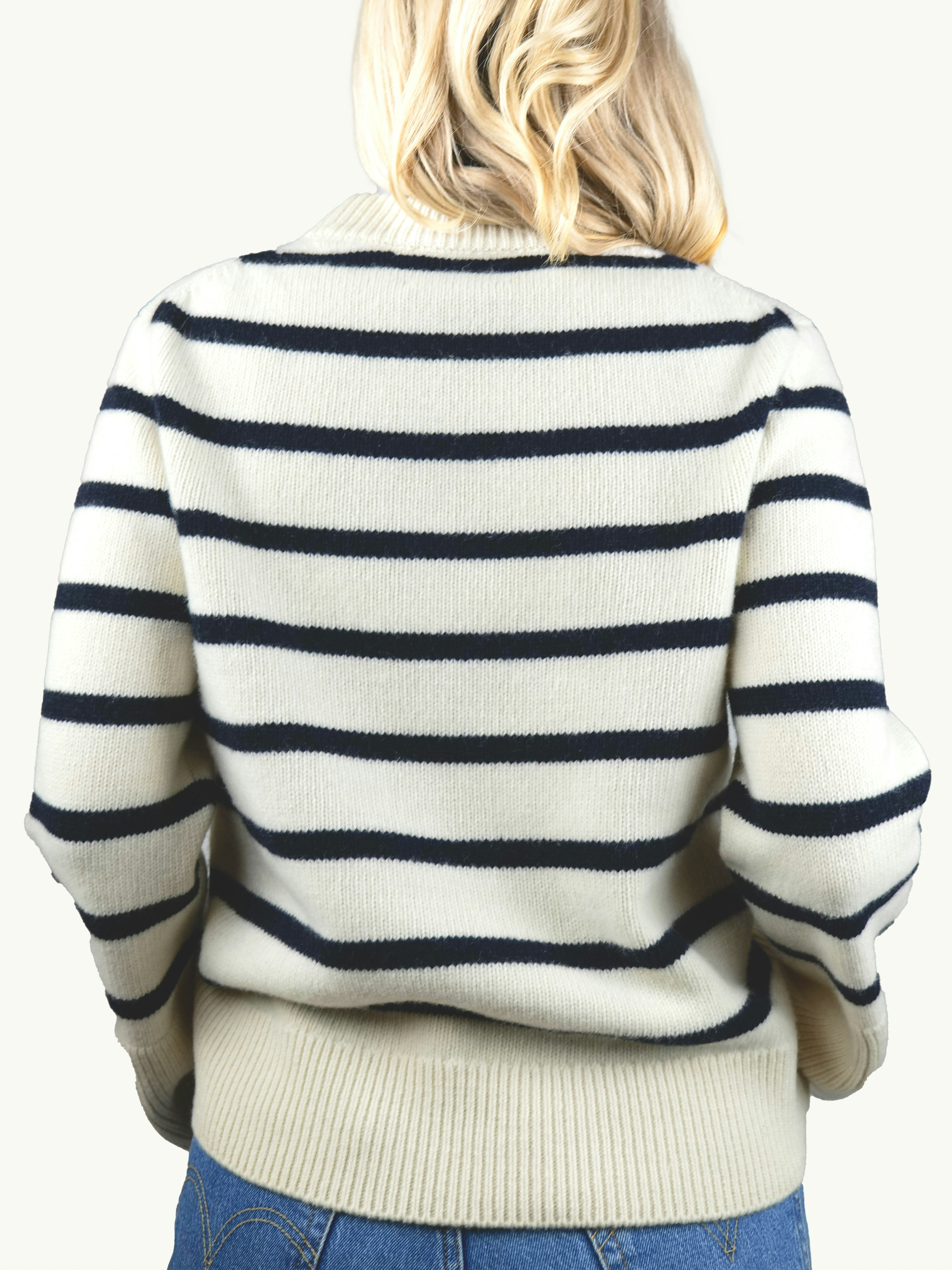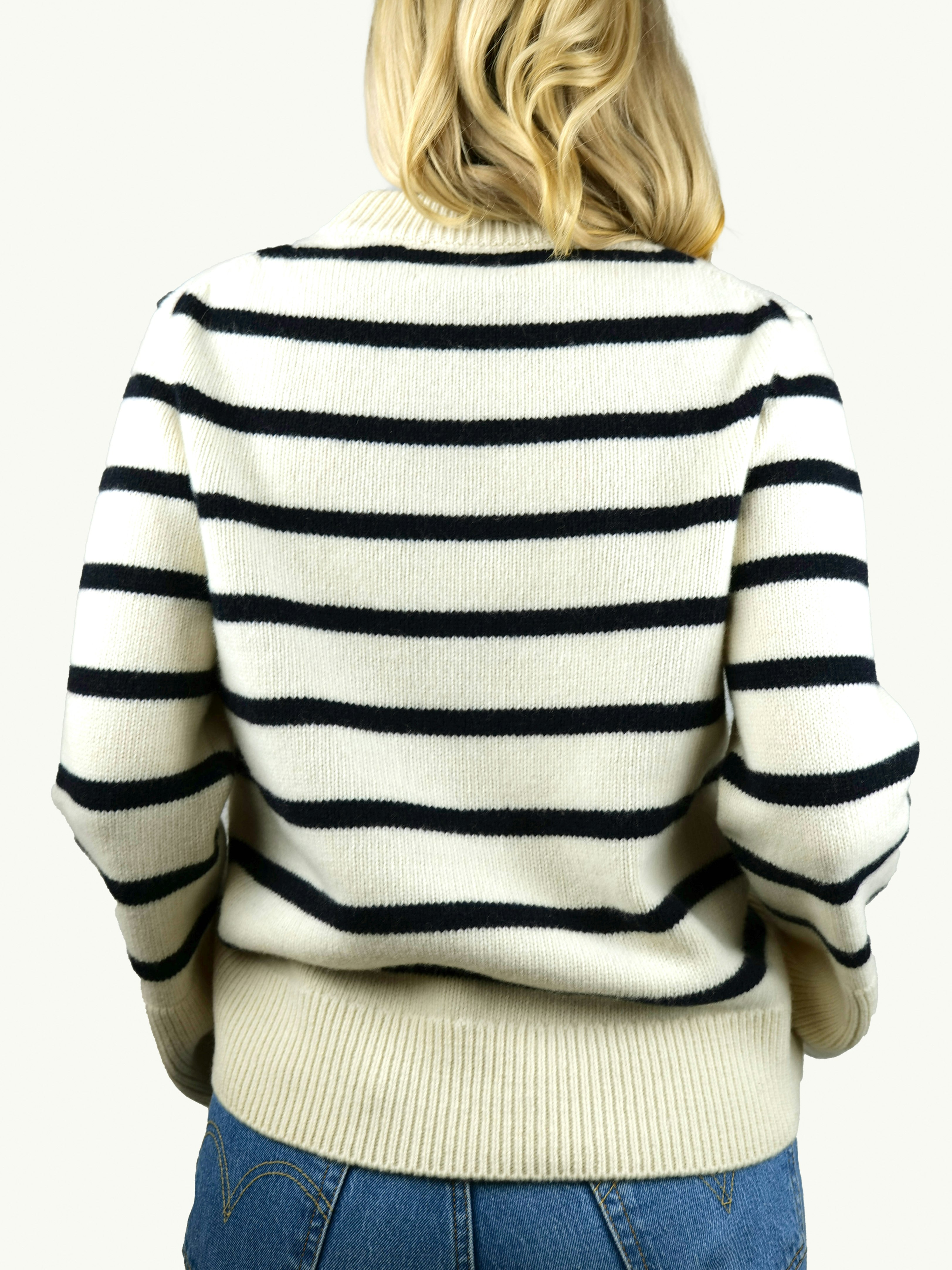 Hammarö är en klassisk randig tröja med rund hals, slätstickad i en exklusiv blandning av ull och kashmir.