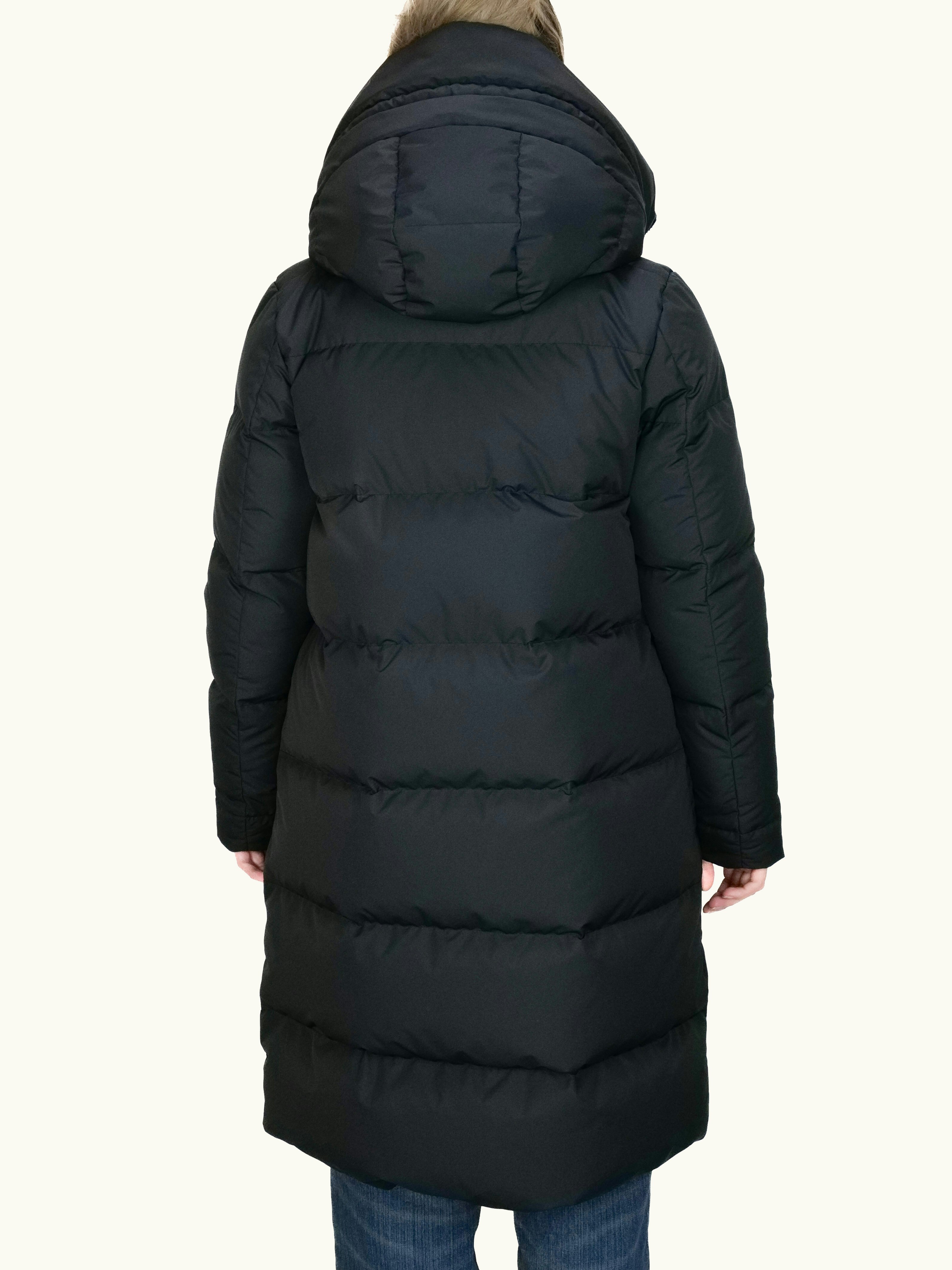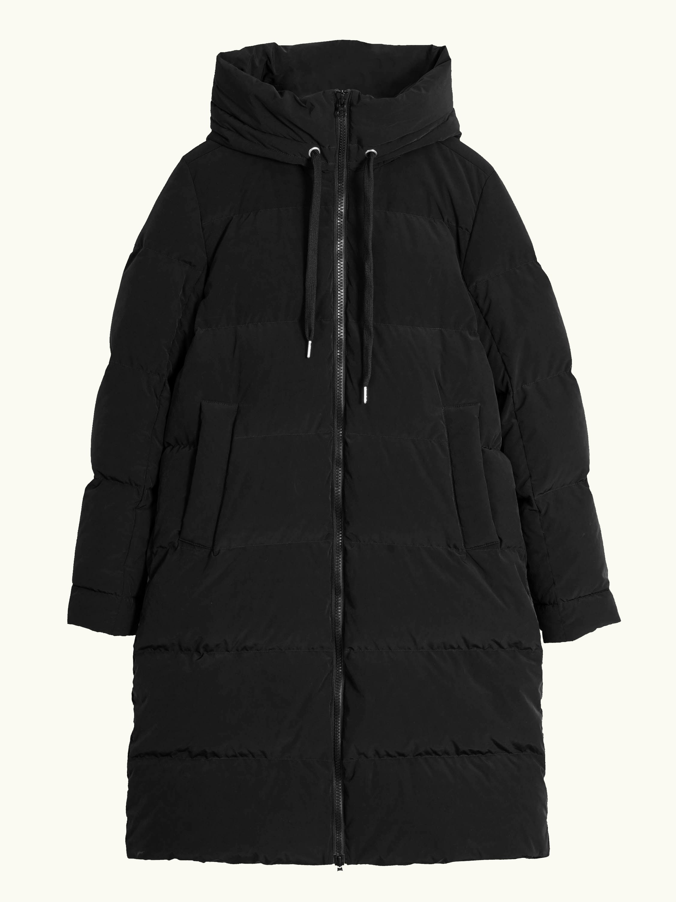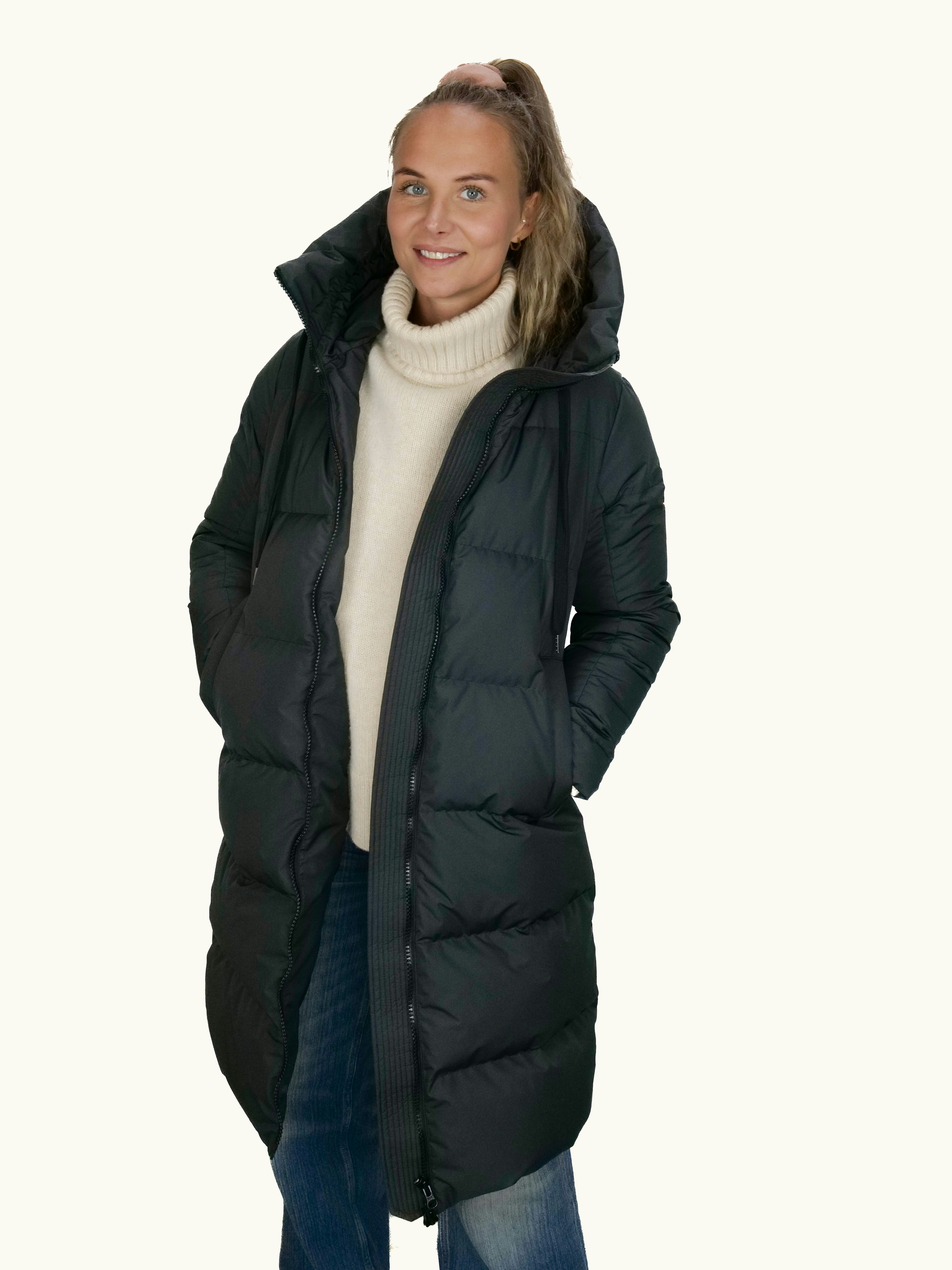 En lång, värmande dunjacka med stor, mysig huva – nu i ett uppdaterat yttertyg, samma som våra klassiska Alexandrajackor.