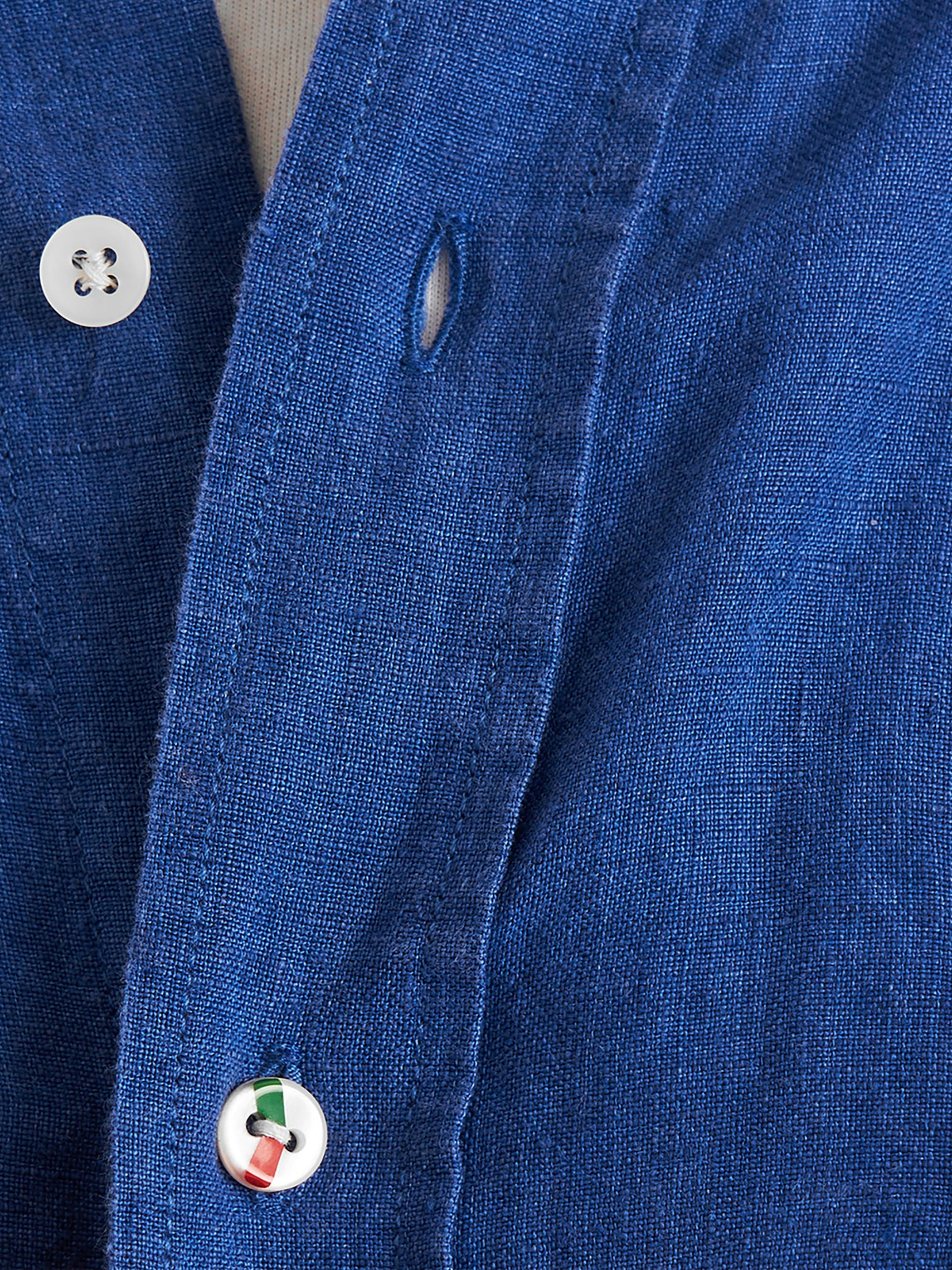 Skjortans tredje knapp har vår handmålade Boomerang-knapp.