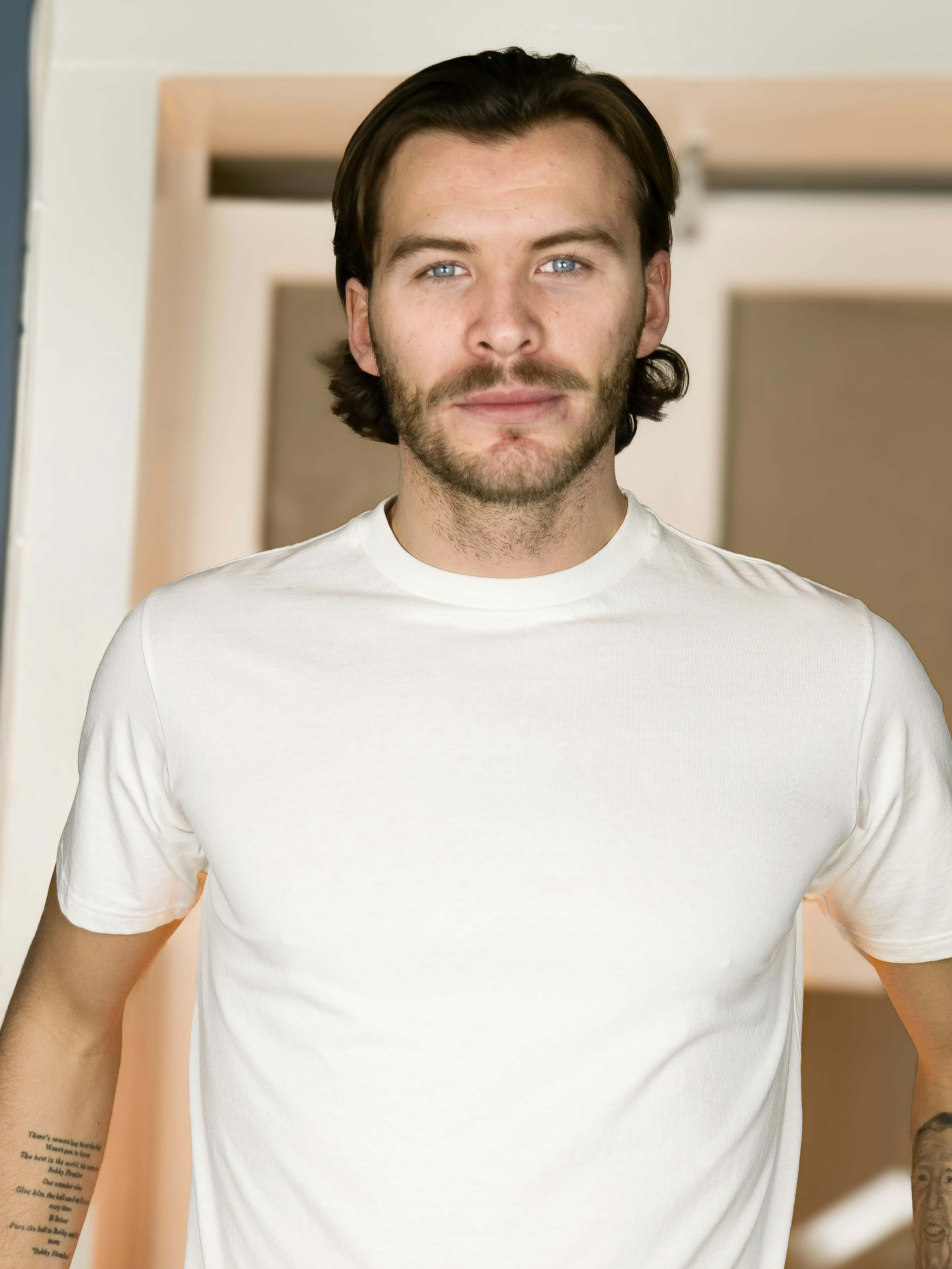 Modellen bär storlek M och är 185 cm