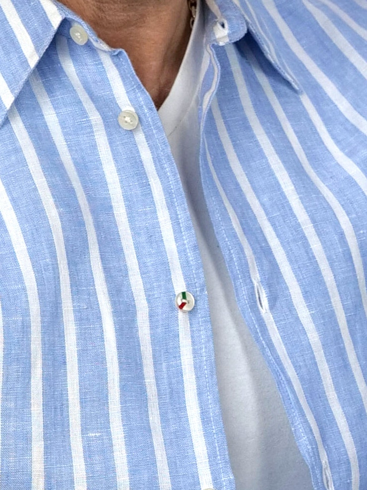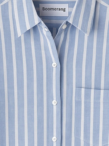 Detaljerna är genomtänkta: den tredje knappen är vår ikoniska, handmålade Boomerang-knapp – en liten men tydlig hyllning till vårt arv. Övriga knappar är tillverkade av återvunnet material, i linje med vårt hållbarhetsfokus.