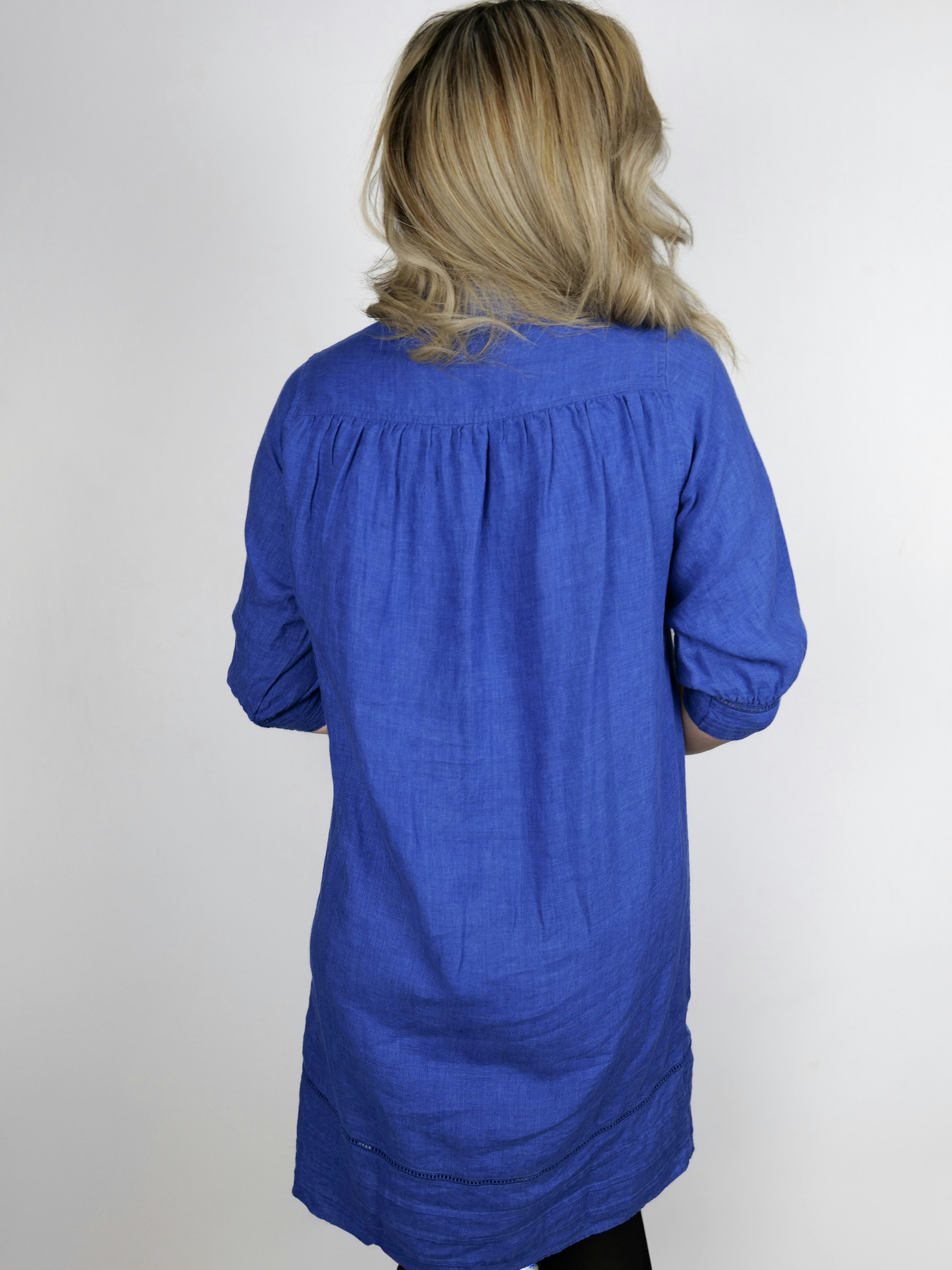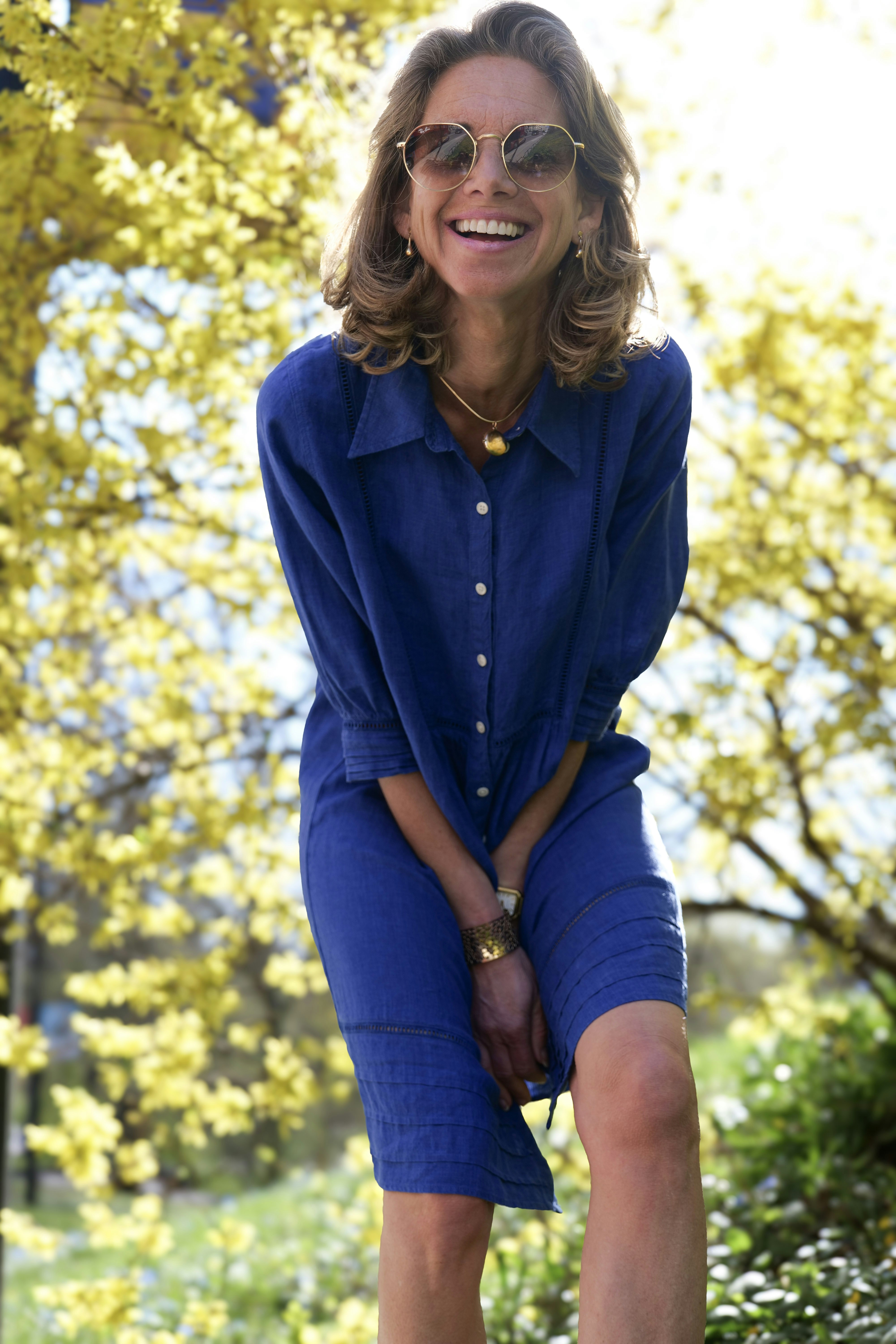 Klänningen är skapad i en avslappnad passform och i en förtvättad linnekvalitet som lovar en mjuk och skön känsla.