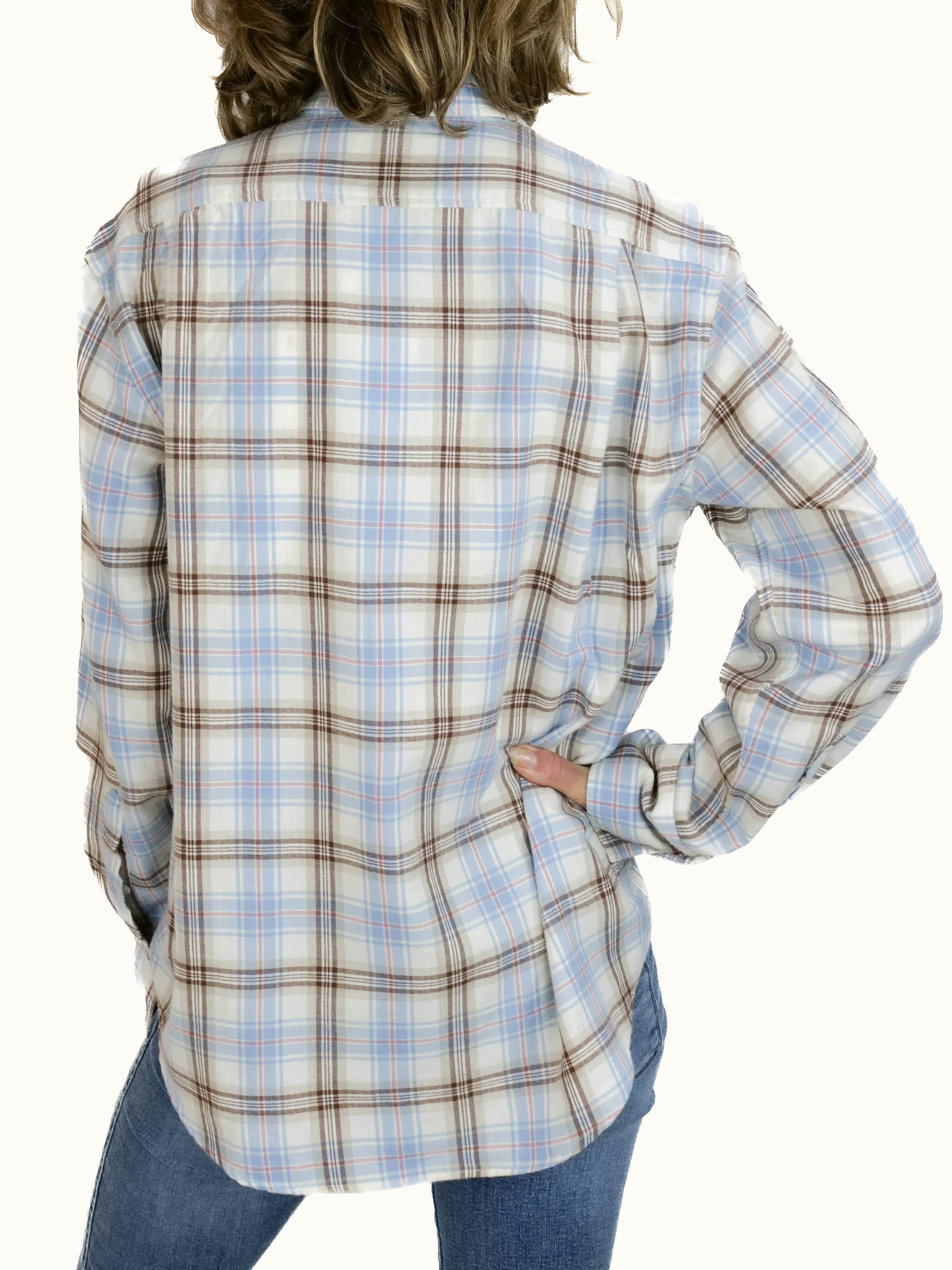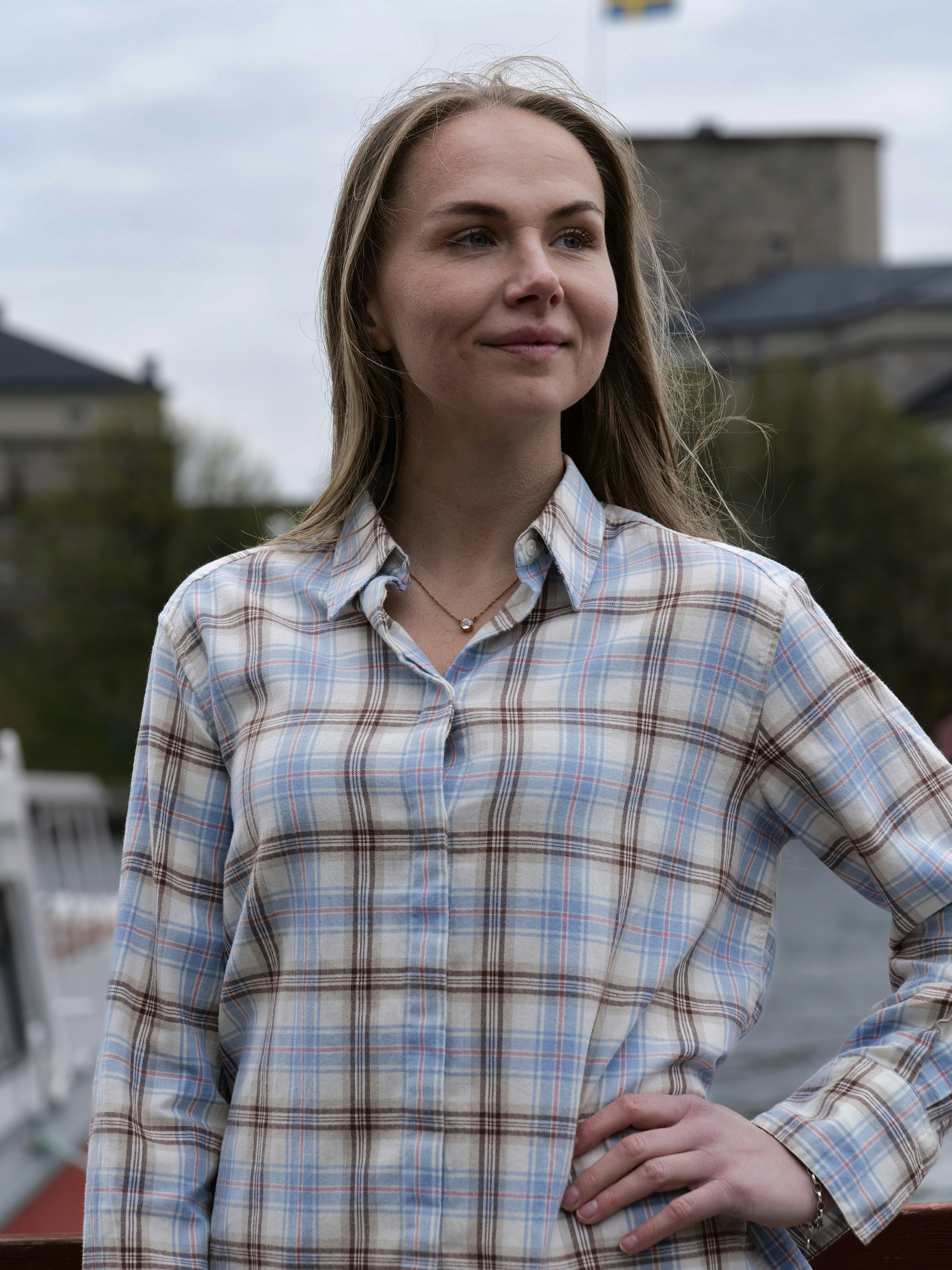 Styrsö är en skjorta i en mjuk, lätt borstad kvalitet av bomull och merinoull – ett material som kombinerar komfort med elegans. Det klassiska rutmönstret i ljusblått, vitt, rosa och brunt gör den lätt att matcha med resten av garderoben, oavsett säsong.