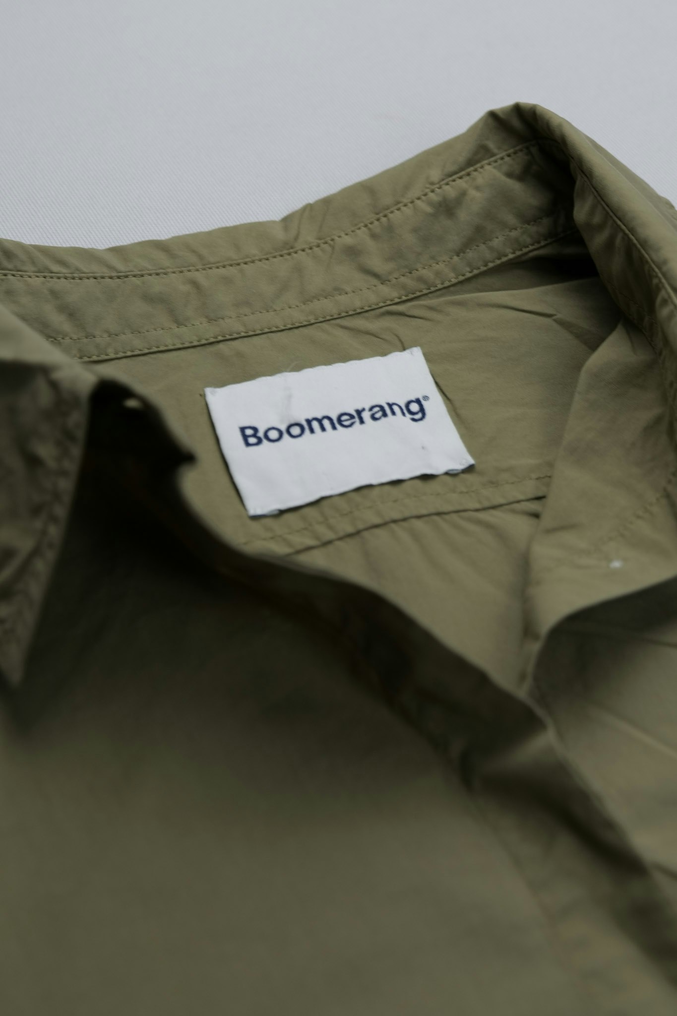 SignaturDen ikoniska knappen med Boomerang-symbolen tillverkas för hand i en liten familjeägd fabrik i Portugal – och har så gjorts ända sedan 1979. Ägaren till fabriken tyckte om tanken på något som sätter hantverket i fokus, en process som visar på den mänskliga handens känsla framför maskinens. Tillsammans kom vi på idén att tillverka knappar med skåror, för att ge dem ytterligare djup och också förstärka känslan av hantverk. Skårorna fylls sedan med den röda och gröna färgen som signalerar Boomerang.
