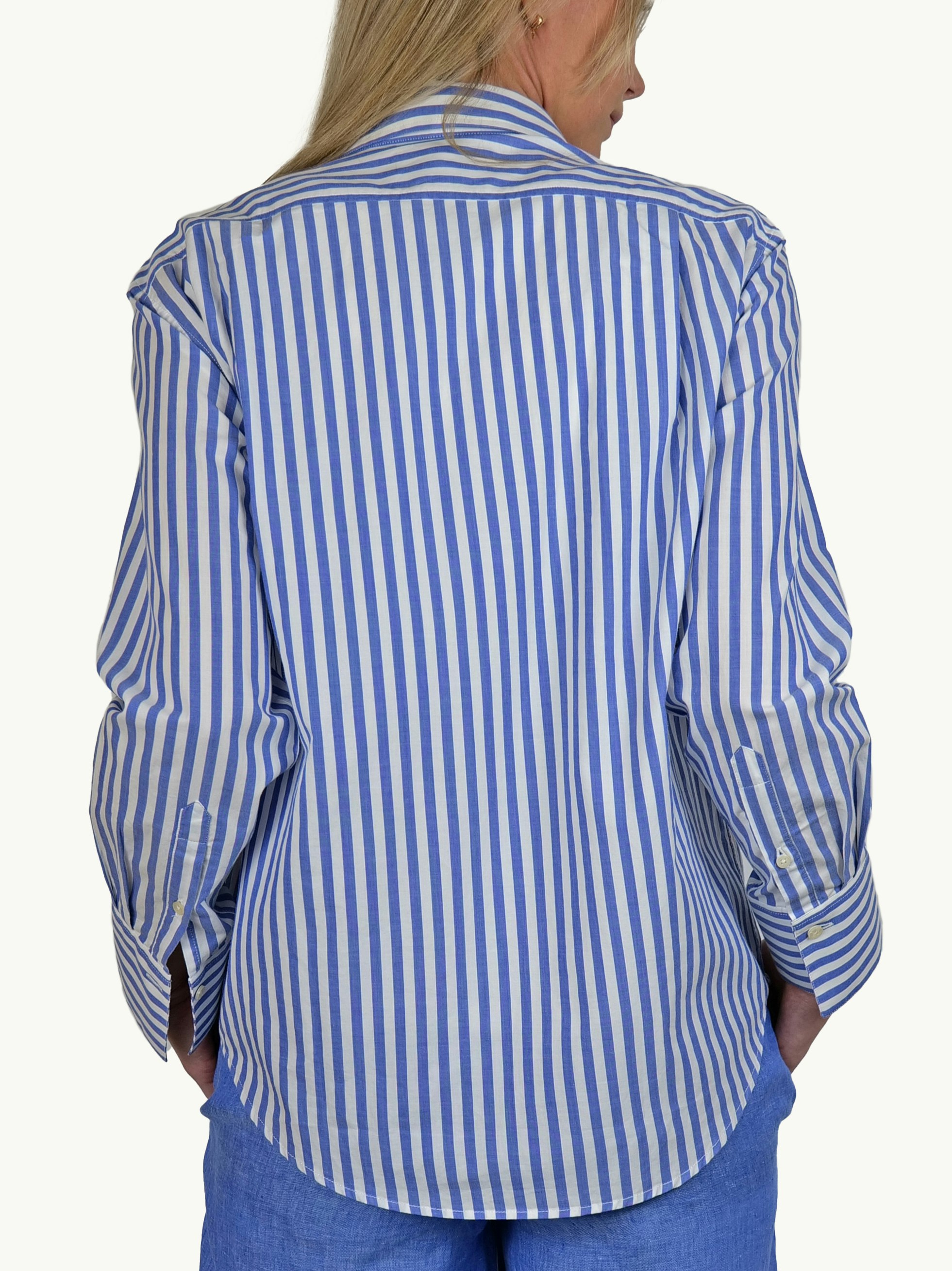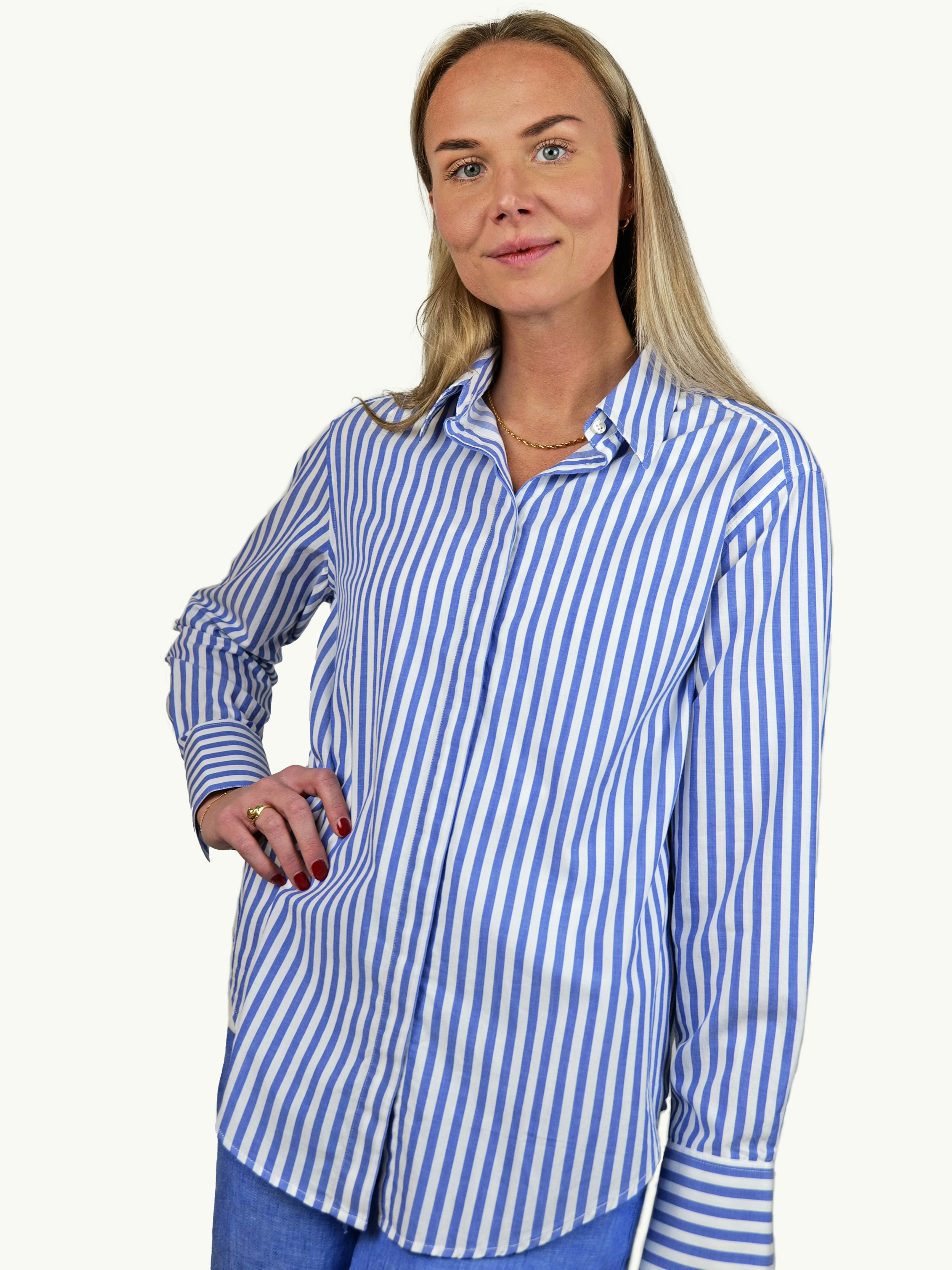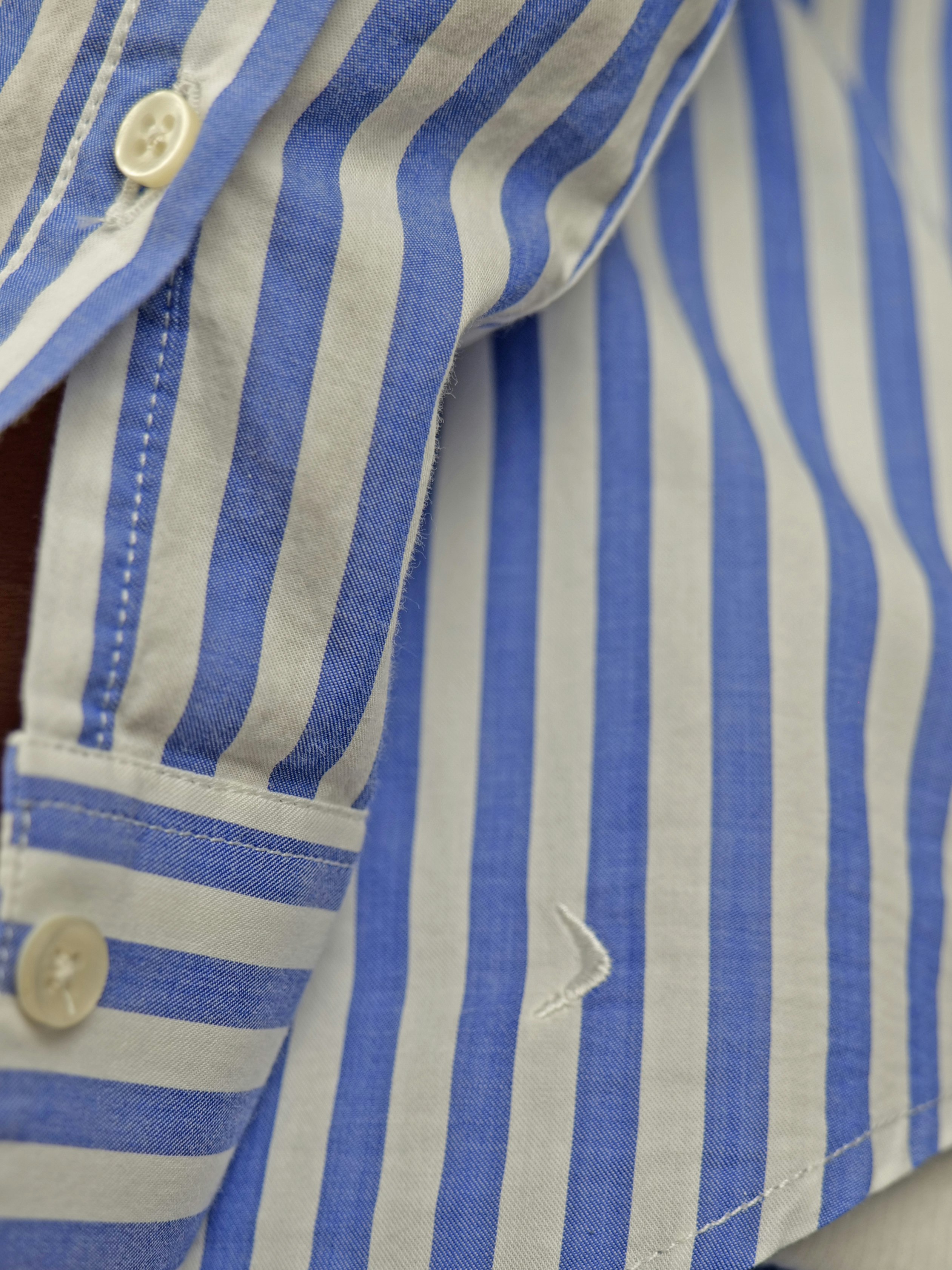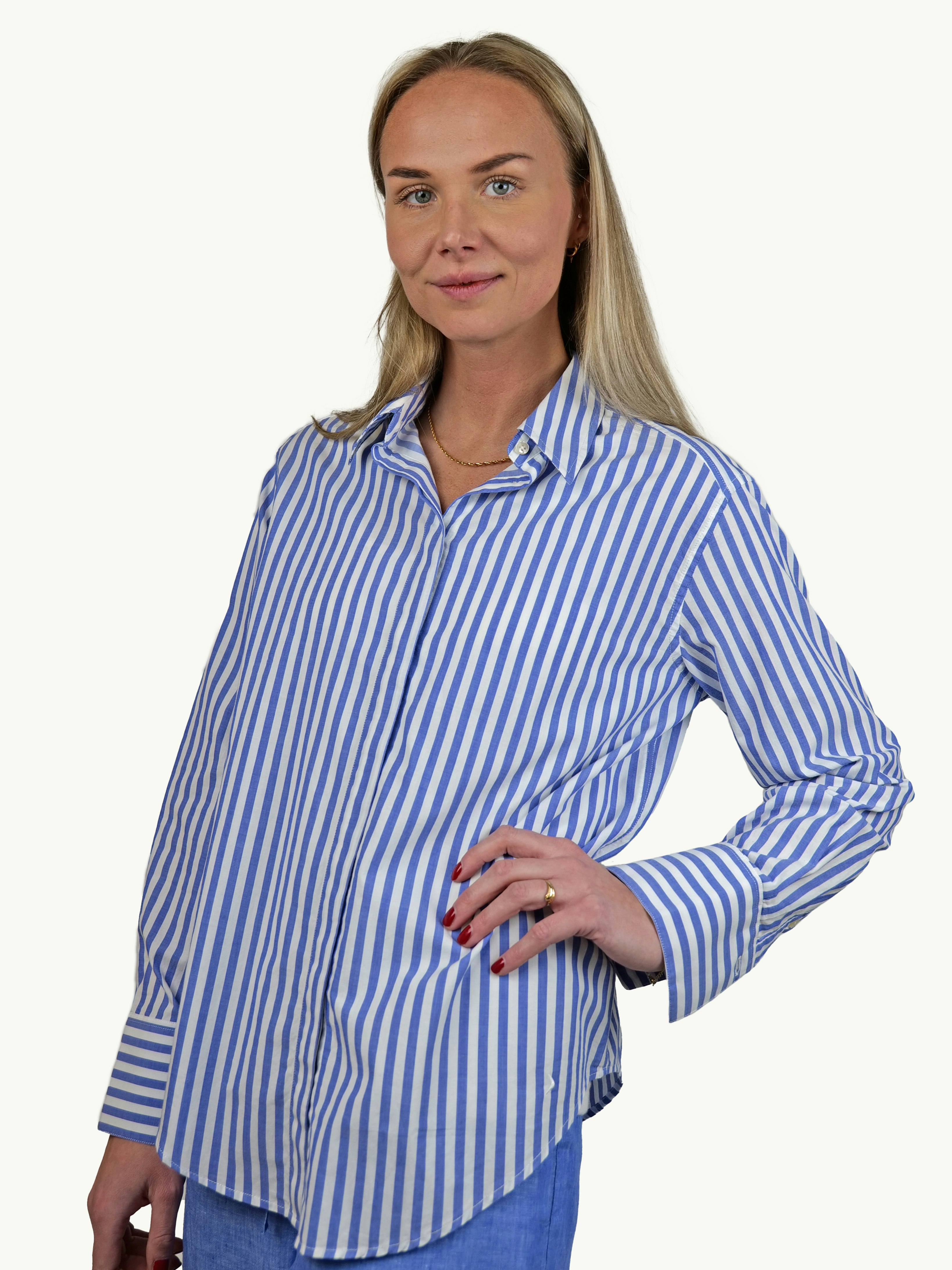 Den randiga Styrsö poplinskjortan är tillverkad i en mjuk och lätt bomullspoplin som ger en behaglig känsla mot huden och ett naturligt, avslappnat uttryck. Ett mångsidigt plagg som fungerar lika bra till vardag som till mer uppklädda tillfällen.