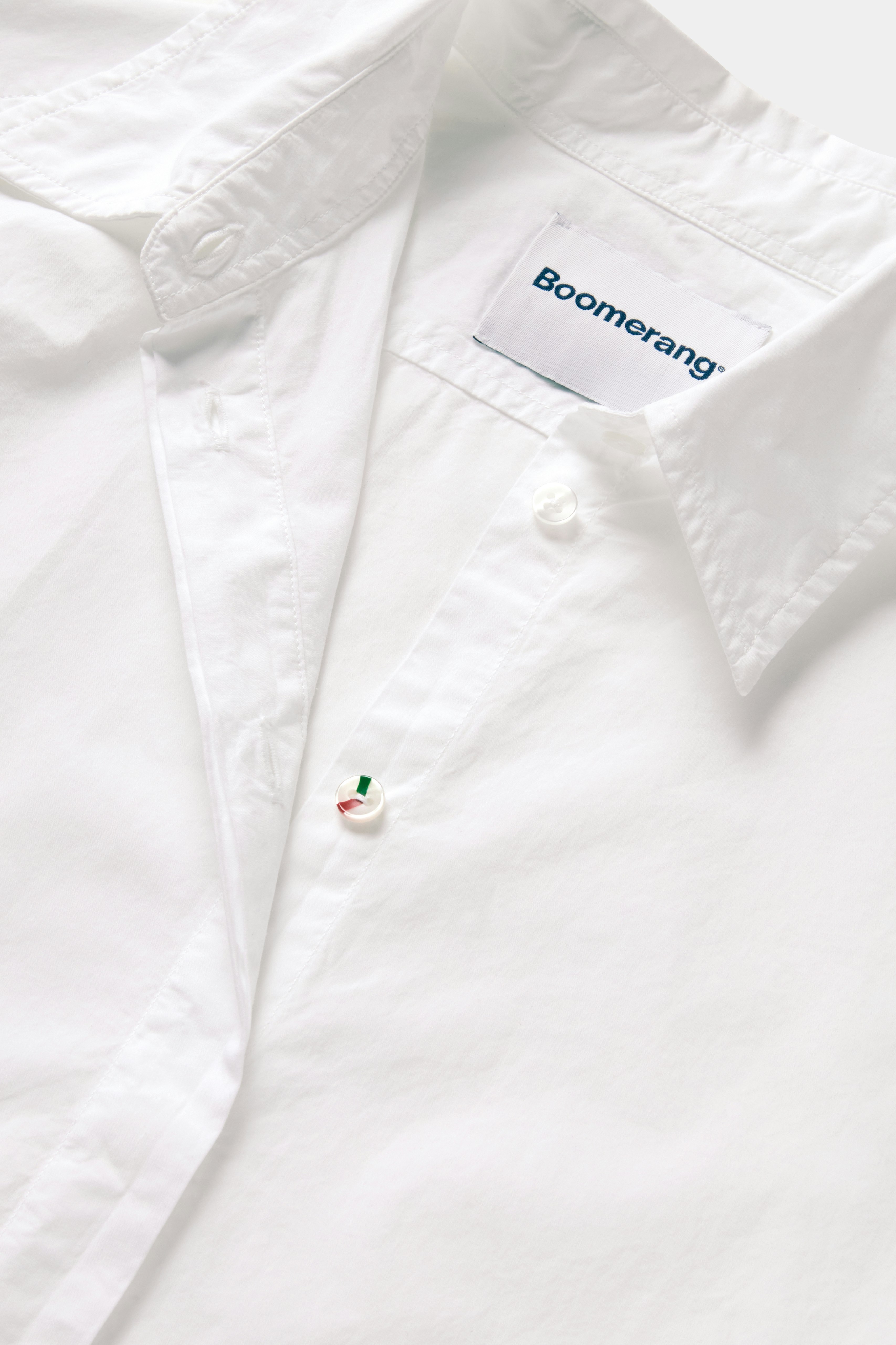 Trots den dolda knäppningen finns en detalj som särskiljer sig, den tredje knappen är vår ikoniska Boomerang-knapp, vars handmålade design speglar vårt engagemang för hantverk och vår historia.