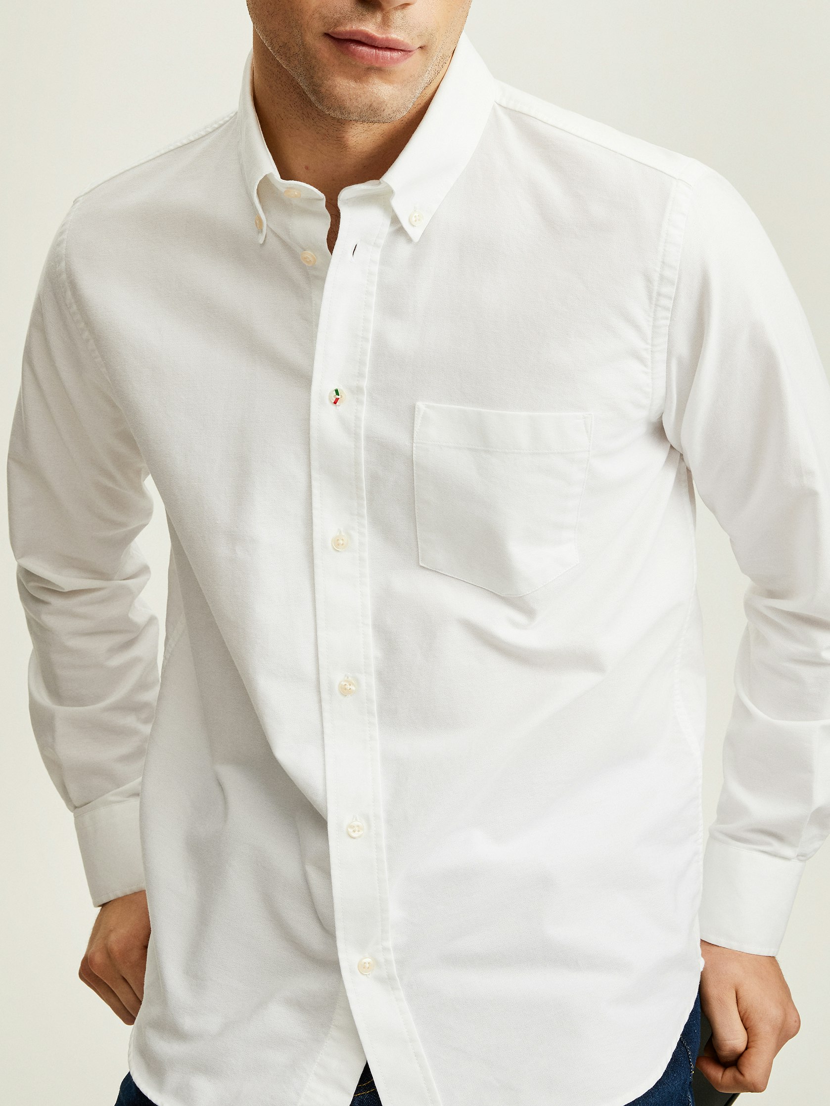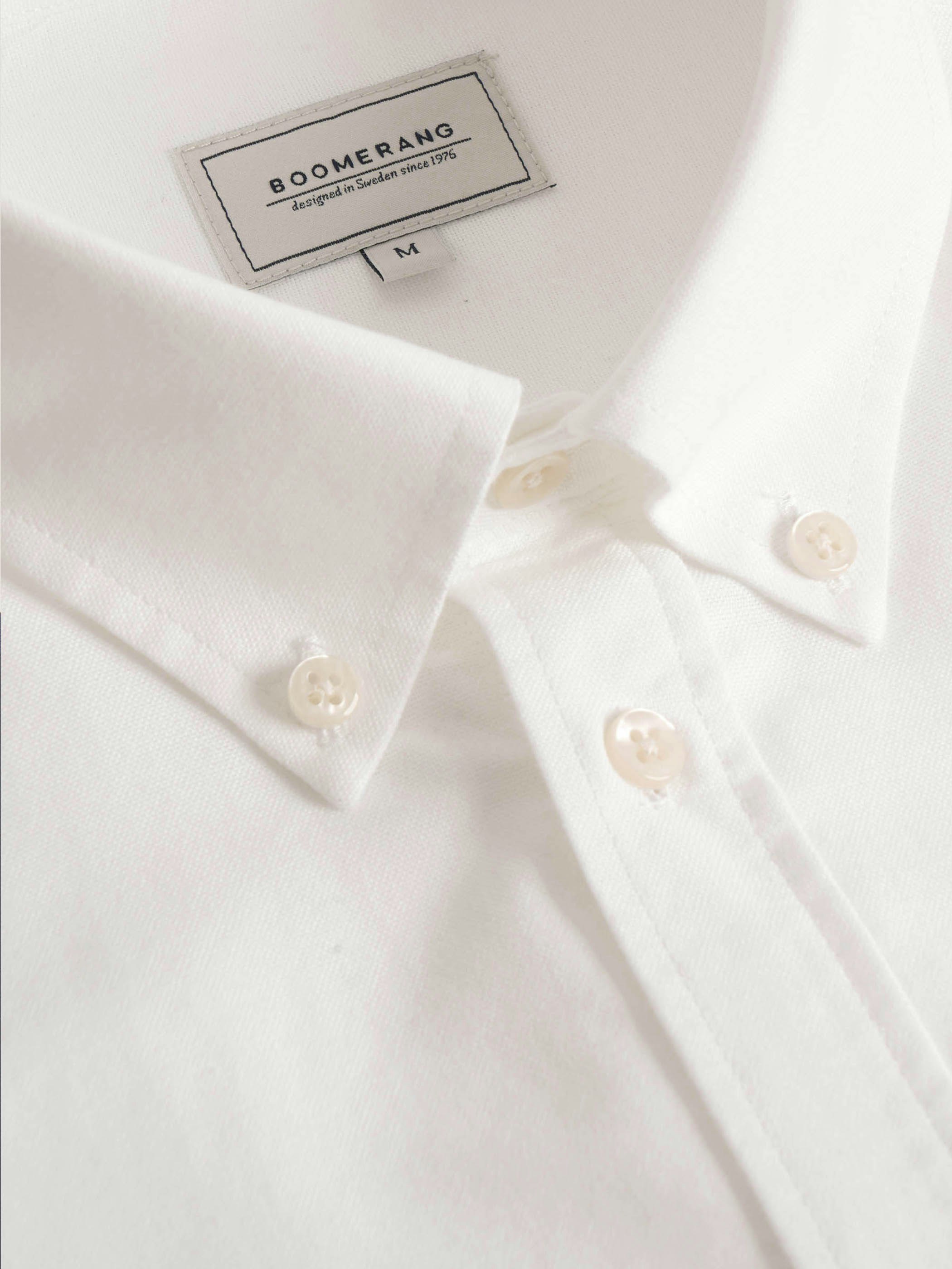 Oxfordskjortan Väddö i rak passform är tillverkad i ekologisk bomull i Portigal.