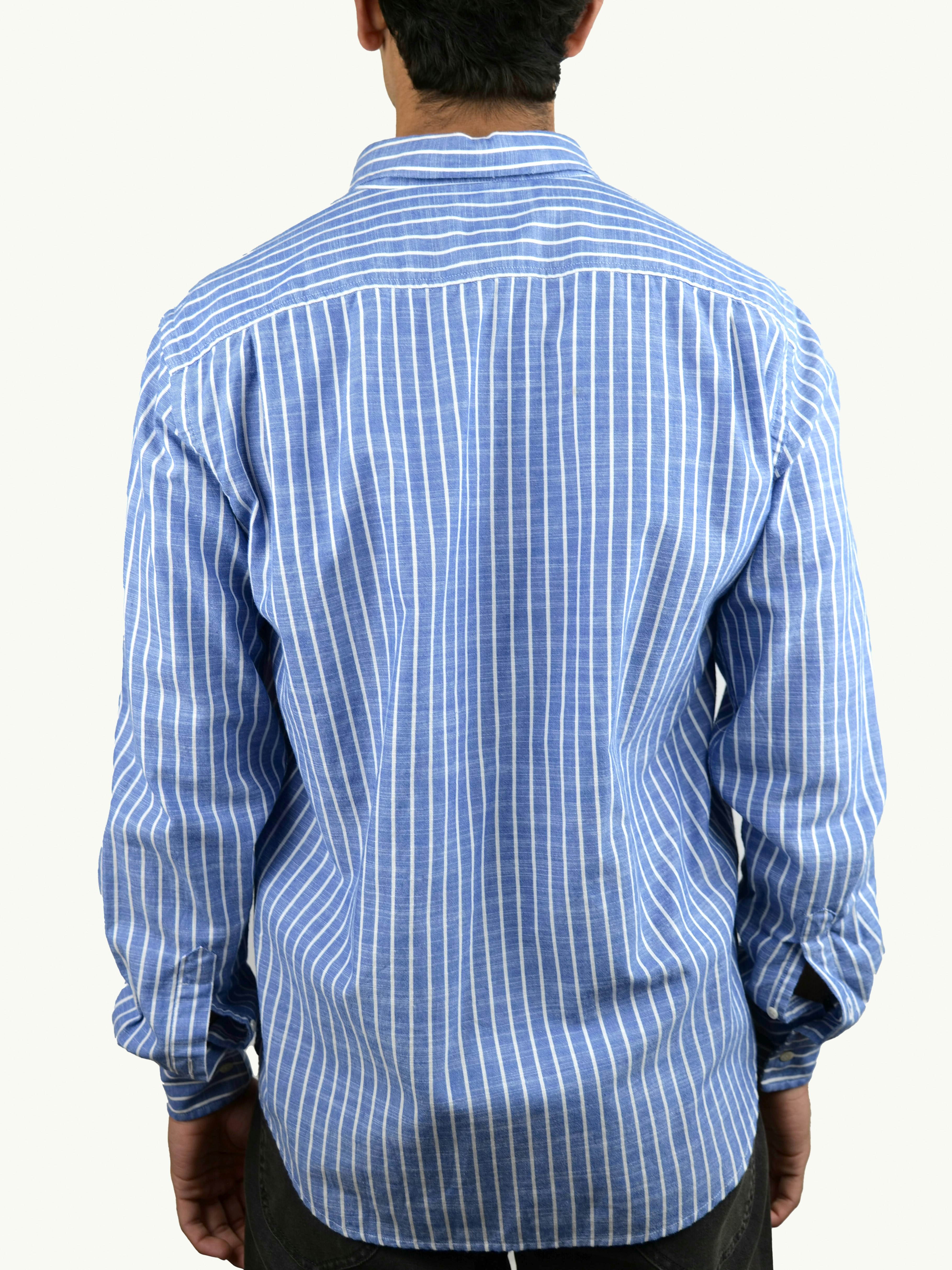 Skjortans tredje knapp har vår handmålade Boomerang-knapp, resterade knappar är återvunna.