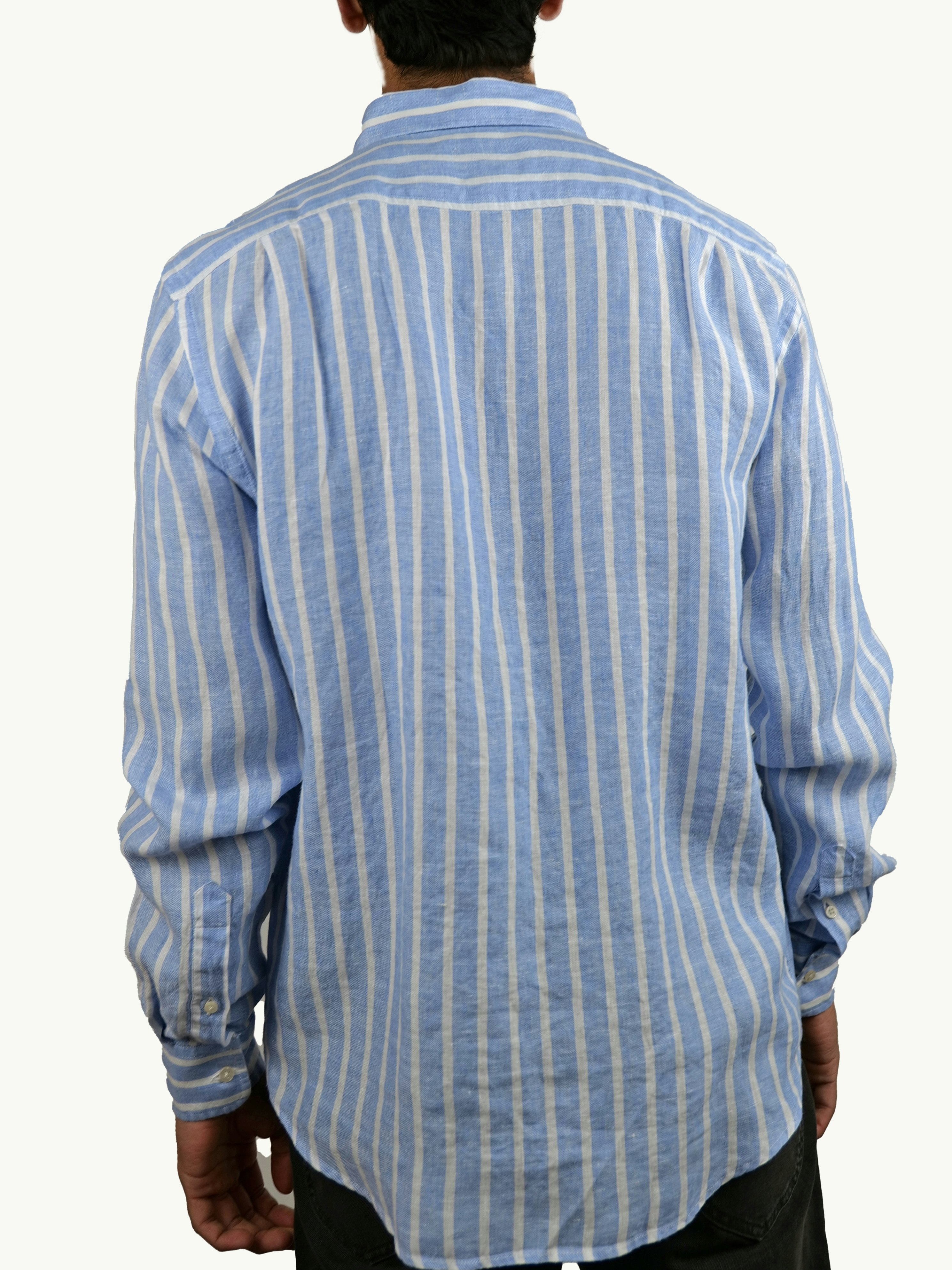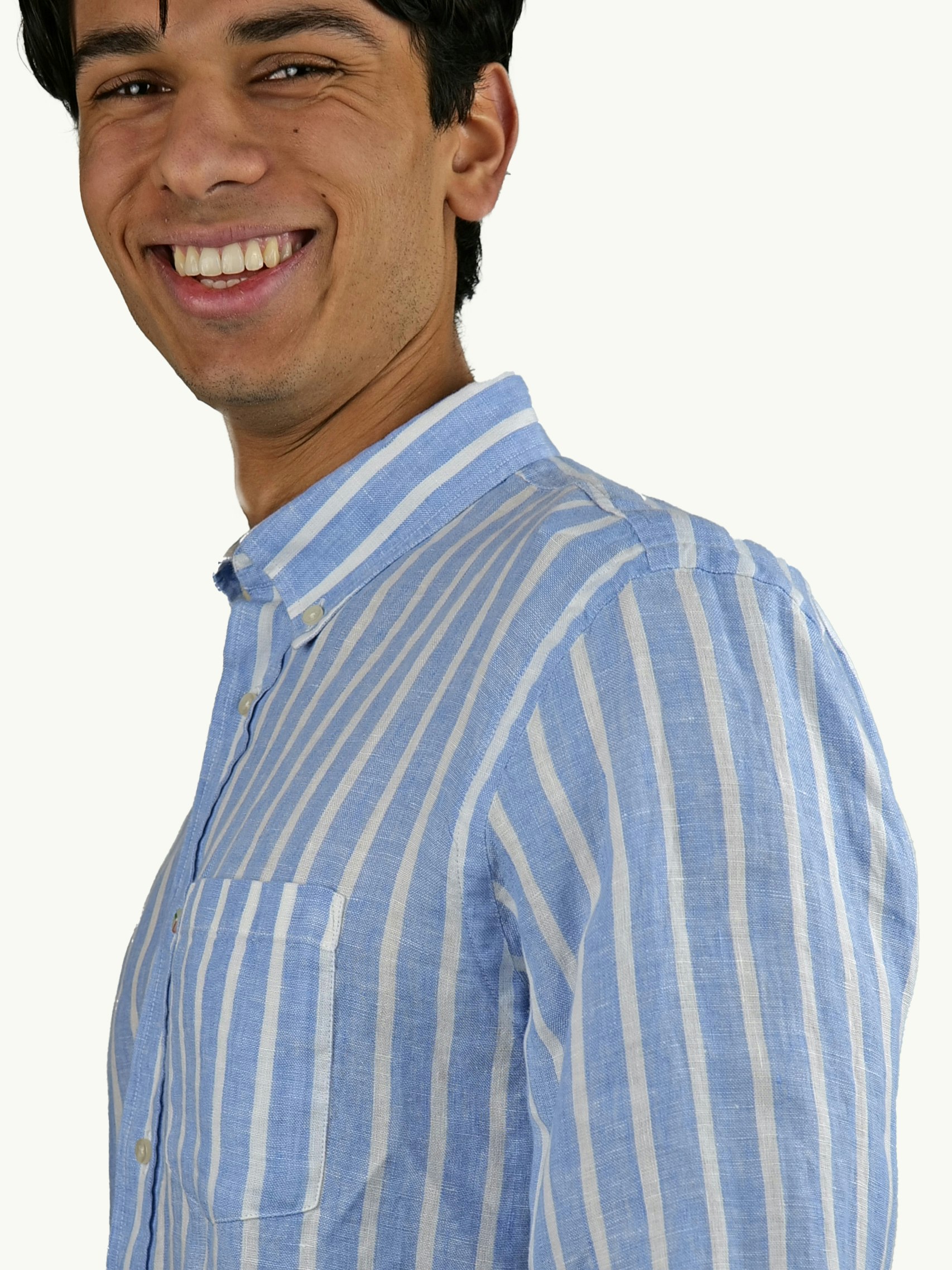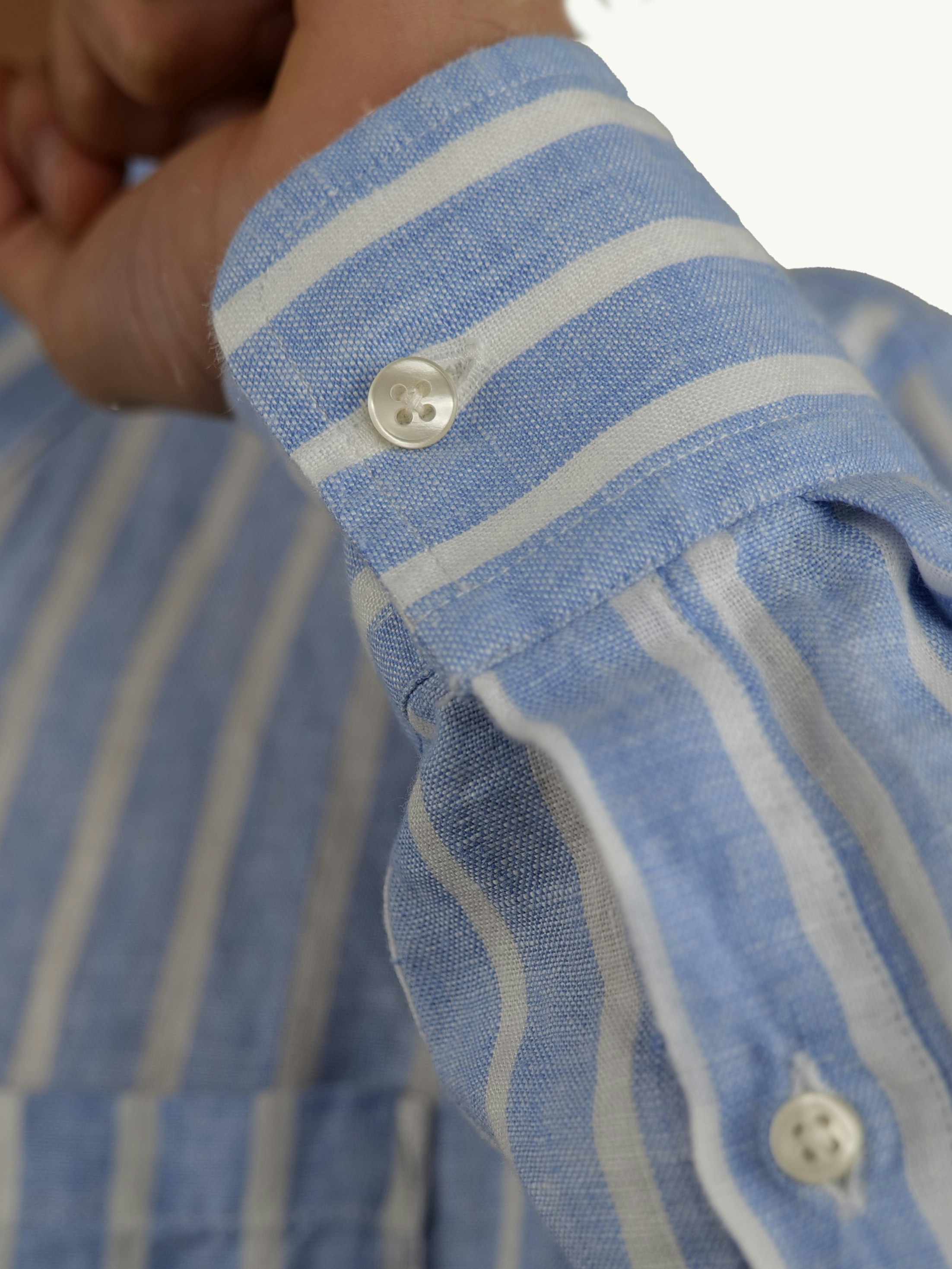 Randiga Väddö är en klassisk linneskjorta med regular passform, där ett tidlöst randigt uttryck möter genomtänkt funktion och hantverk. De vertikala ränderna ger skjortan karaktär och förstärker dess avslappnade men välklädda känsla – lika självklar i stadsmiljö som under lediga dagar vid havet.